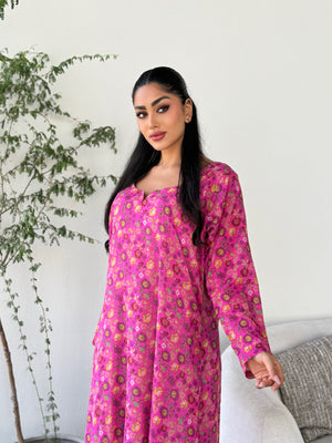 The Dima Jalabiya combines classic elegance with everyday comfort. Crafted from premium cotton, this jalabiya features a vibrant floral design that adds a touch of sophistication. Its lightweight, breathable fabric makes it perfect, offering a relaxed yet graceful silhouette for all-day comfort.
