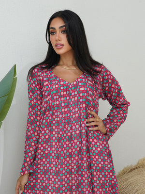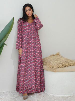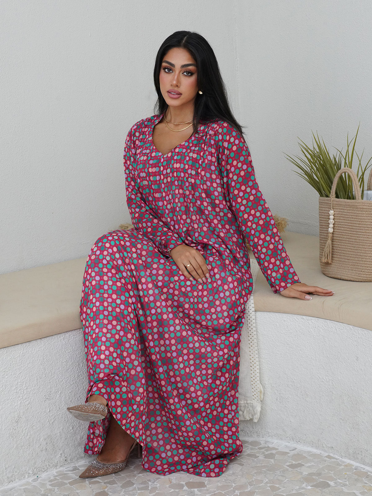 Discover the perfect fusion of elegance and comfort with the Alya Jalabiya. Crafted from premium cotton, this elegant piece ensures breathability and softness. The intricate pleating on the chest adds a touch of modern elegance to its timeless design. . With its relaxed fit and flowing cut, this jalabiya offers ease of movement, making it perfect for daily wear. The softly rounded V-neckline enhances its refined look, while the adorned cuffs add a touch of elegance. Lightweight and durable, this jalabiya is an essential addition to your wardrobe, especially suited for warm weather.