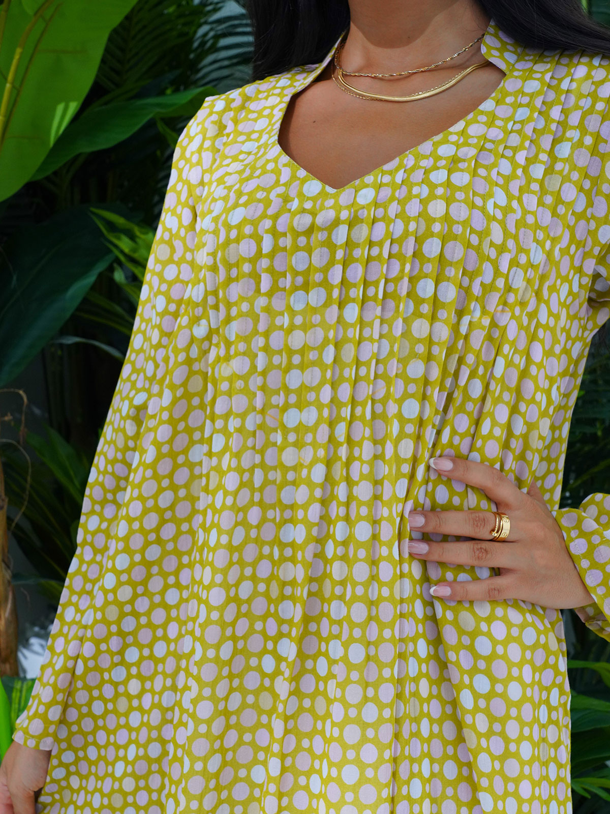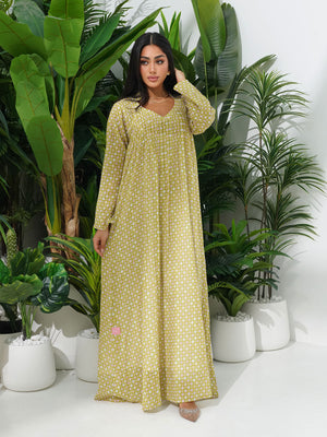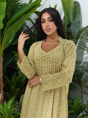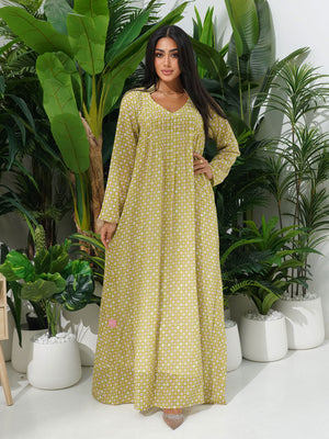 Discover the perfect fusion of elegance and comfort with the Alya Jalabiya. Crafted from premium cotton, this elegant piece ensures breathability and softness. The intricate pleating on the chest adds a touch of modern elegance to its timeless design. . With its relaxed fit and flowing cut, this jalabiya offers ease of movement, making it perfect for daily wear. The softly rounded V-neckline enhances its refined look, while the adorned cuffs add a touch of elegance. Lightweight and durable, this jalabiya is an essential addition to your wardrobe, especially suited for warm weather.