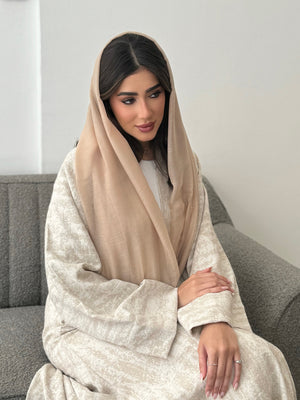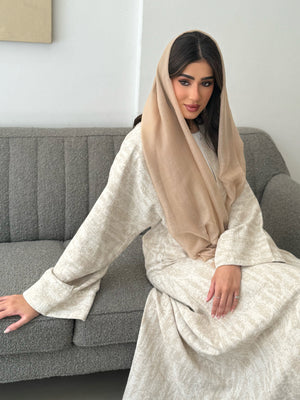 Enhance your elegance with the Milky Abaya. Crafted from high-quality fabric for superior comfort, its pattern exudes timeless sophistication. The flowing cut provides a graceful silhouette, perfect for both casual and formal events. Wide sleeves add contemporary flair, while the complementary beige shaila completes the ensemble. Lightweight and durable, the Milky Abaya is a must-have for any discerning wardrobe.