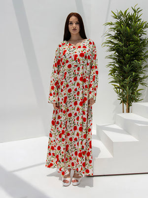 Rose Jalabiya, crafted from linen viscose, offers soft comfort and floral elegance for home wear. The jalabiya features a relaxed and flowing cut that ensures ease of movement. Its delicate floral design adds a touch of sophistication to your home wardrobe.