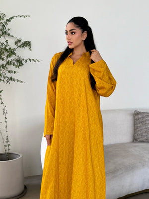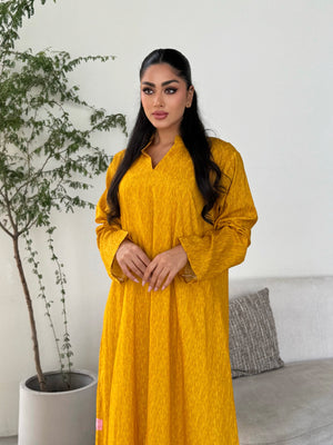 Elegant Collar Design: A minimalist neckline that adds a sophisticated touch to the Jalabiya’s aesthetic.