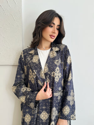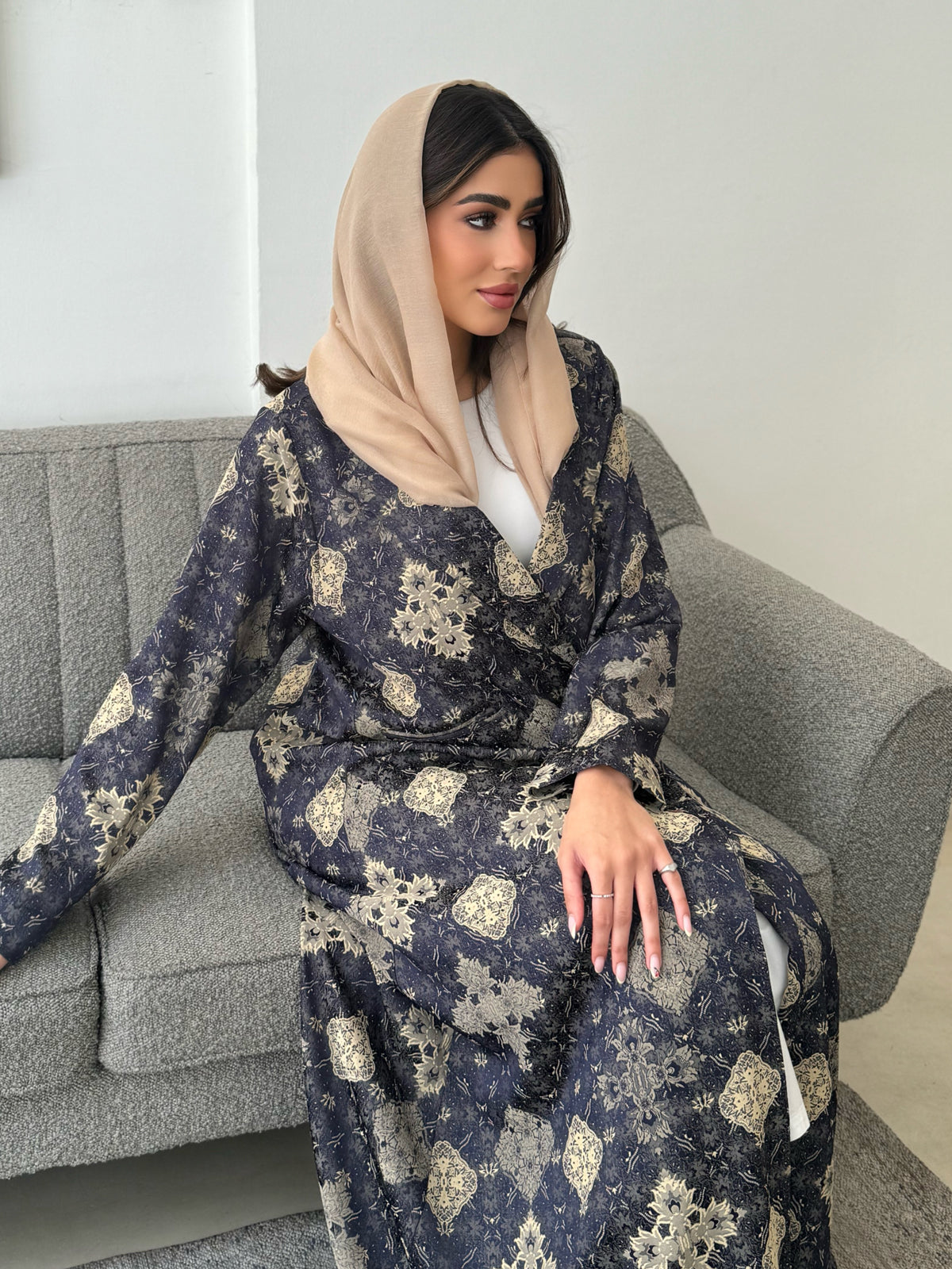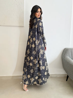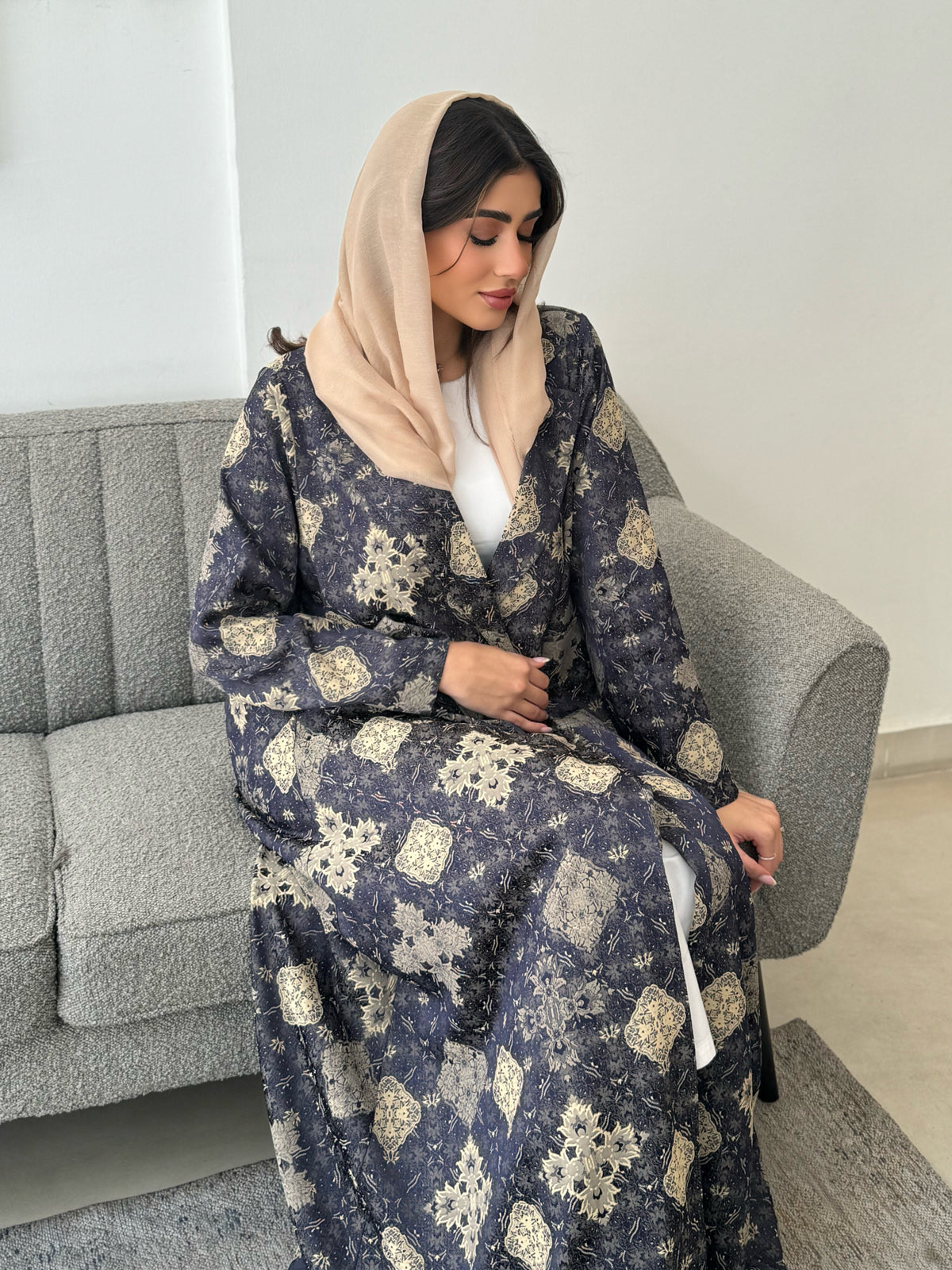 Indulge in the luxurious charm of the Violet Abaya. Crafted from premium fabric, this abaya offers superior comfort and a refined appearance. Adorned with intricate gold patterns, it exudes sophistication and elegance. Its tailored cut provides a graceful silhouette, perfect for both casual and formal events. The abaya’s chic design adds a touch of modern sophistication, while the complementary beige shaila completes the ensemble. Lightweight and durable, the Violet Abaya is an exquisite addition to any discerning wardrobe.