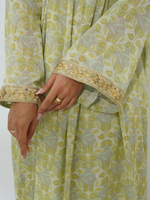 Elegant Collar Design: A minimalist neckline that adds a sophisticated touch to the Jalabiya’s aesthetic.